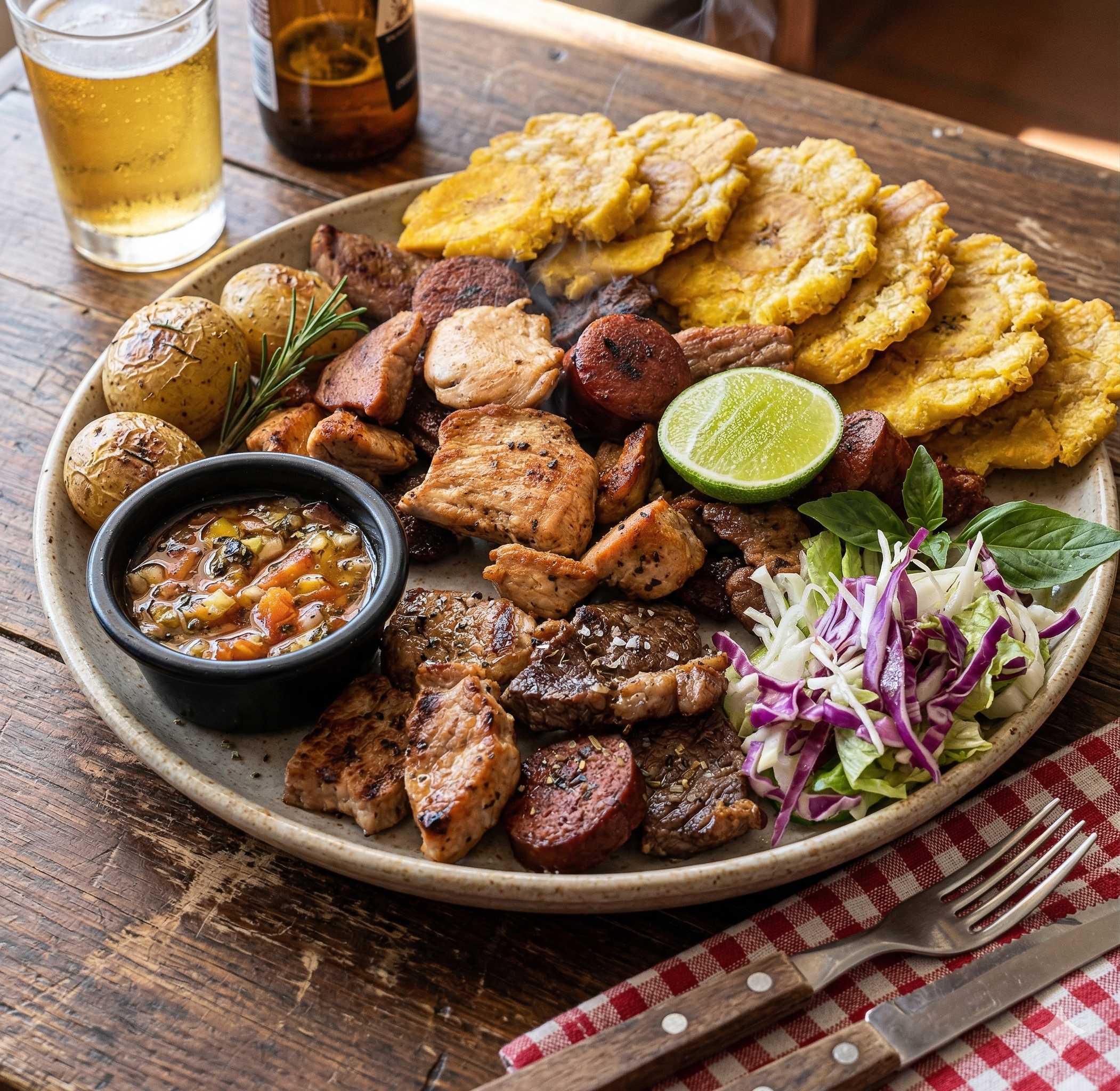 Un plato pa’ los que comen bien 🔥. Jugosa combinación de res, cerdo, pechuga y longaniza, todo bien a la parrilla con ese sabor ahumado irresistible. Perfecto para quedar satisfecho.